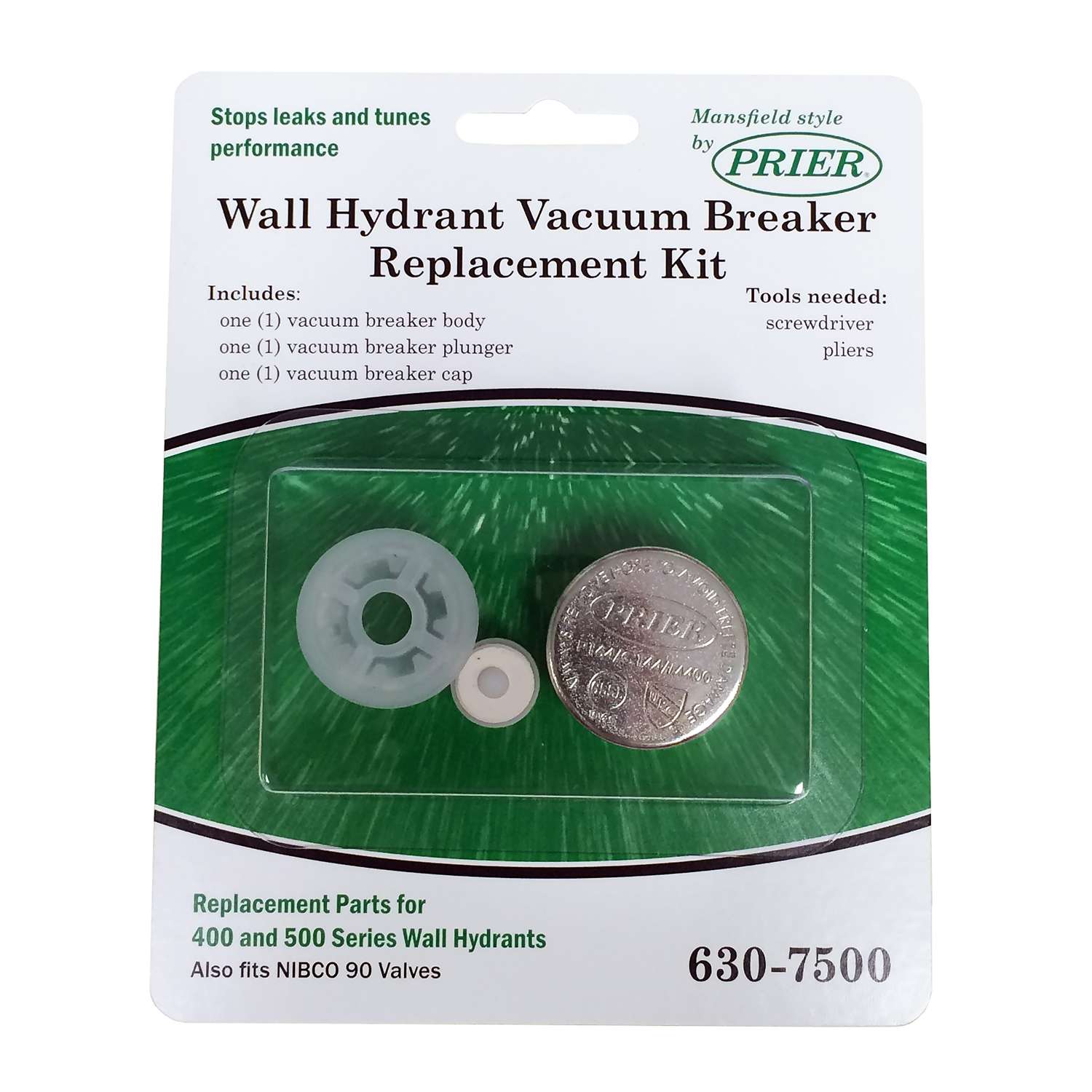 Easy repair with no special tool required prier s complete vacuum breaker repair kit repairs or replaces the anti siphon vacuum breaker on the original mansfield 400 or 500 wall hydrant and prier s mansfield style 400 series wall hydrants.