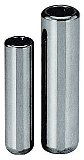Hardened and ground steel a slight lengthwise flat or small groove creates a vent that allows trapped air to escape when the pin is installed in a blind dead end hole.