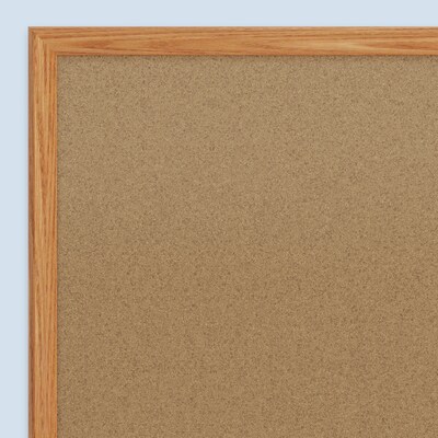 Durable natural cork enclosed bulletin board backed by high density fiberboard secures documents tight.